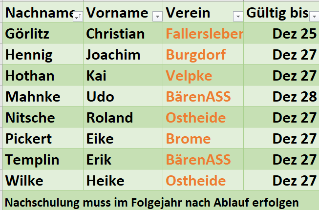 Schiedsrichterobmann ist aktuell Eike Pickert. Sein Stellvertreter ist unser Schriftführer der VG 31, Erik Templin.